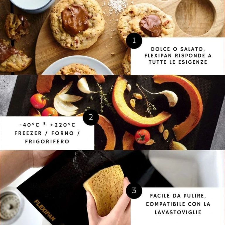Il tappetino da forno multiuso Flexipan® è il tappetino pratico e utile per cuocere tutte le tue preparazioni golose: pane, biscotti… Non cercare oltre, questo è il tappetino da forno che ti serve!