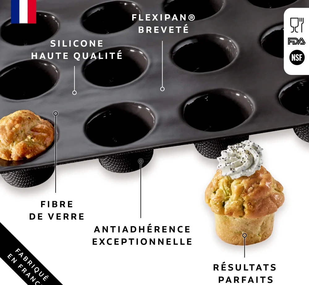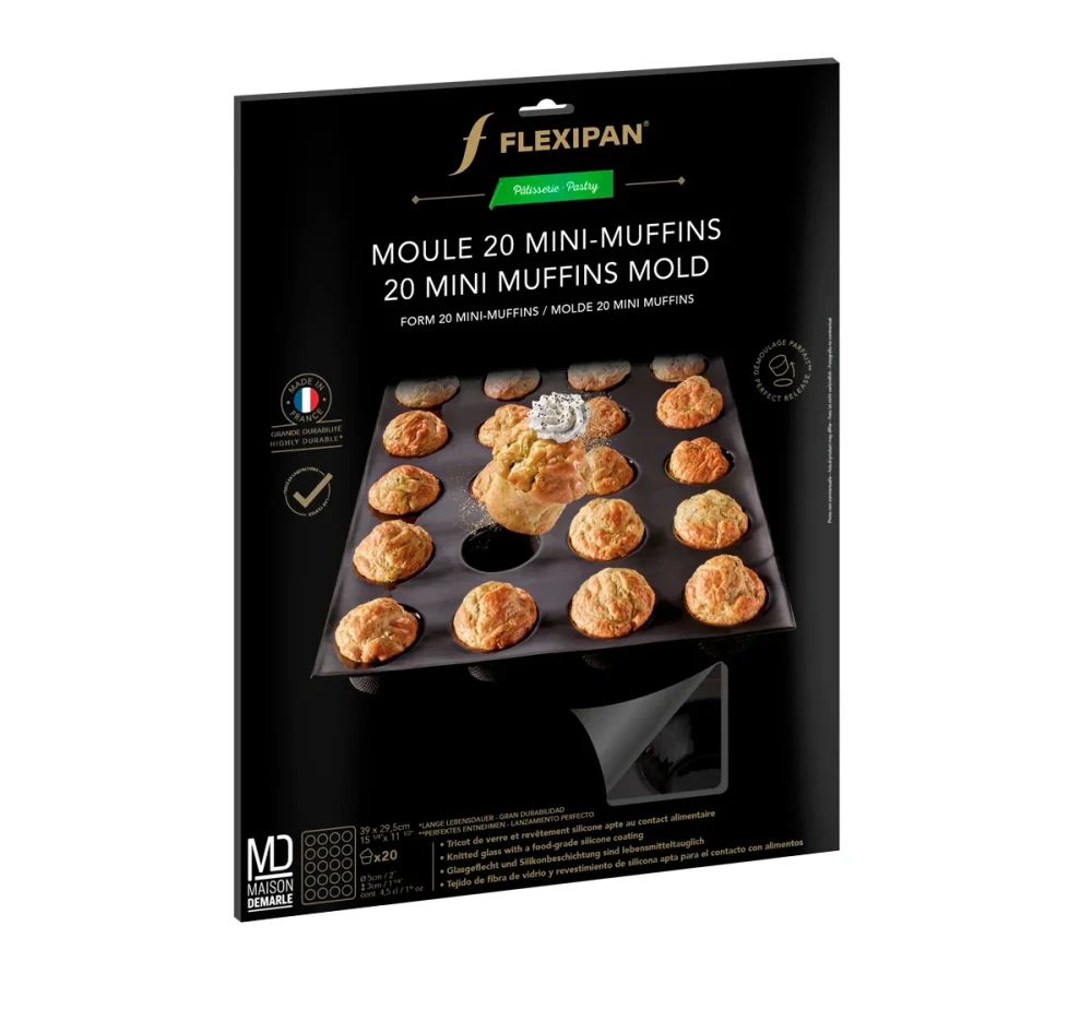 Scatena la tua creatività in cucina con lo stampo Flexipan® per 20 mini-muffin, perfetto per preparazioni monoporzione dolci o salate!